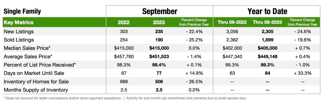 The average sold price YTD is $429,861 and the median sold price YTD is $390,000.