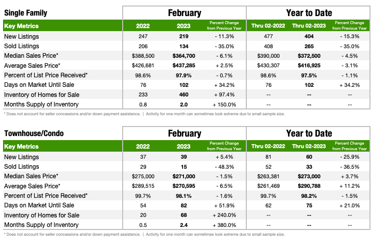 The average sold price YTD is $405,436 and the median sold price YTD is $360,000.